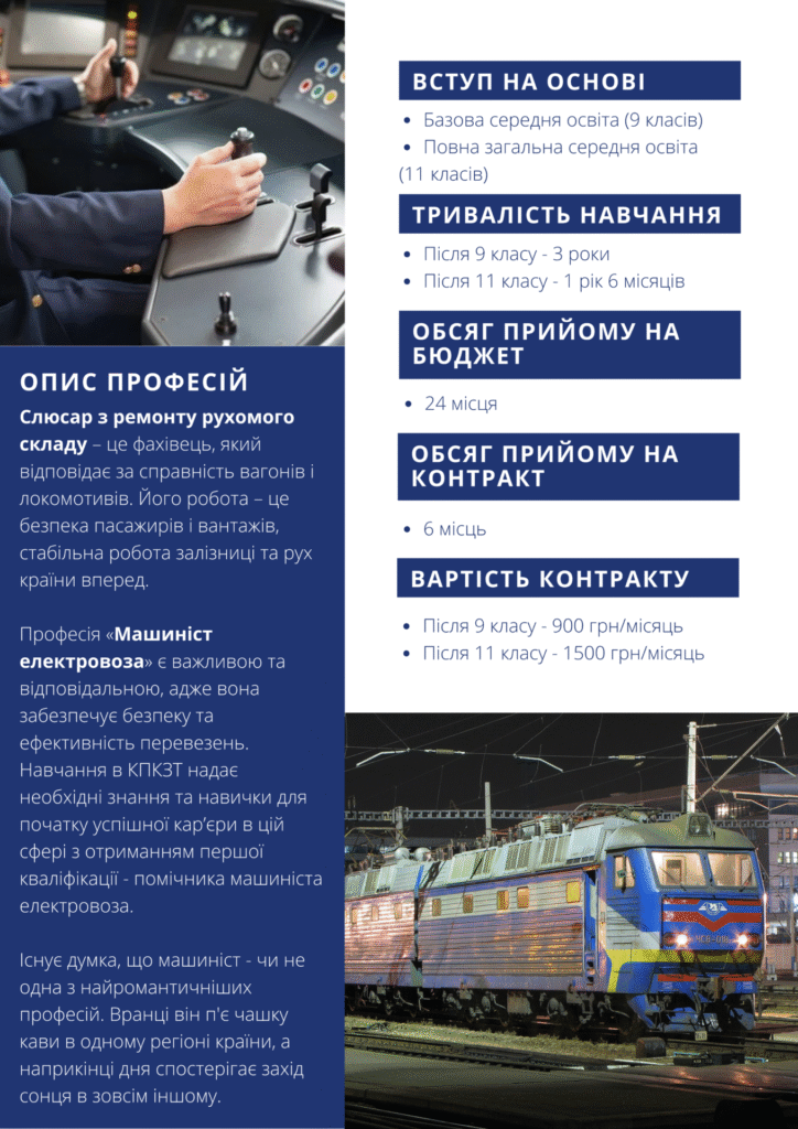 Слюсар з ремонту рухомого складу. Машиніст електропоїзда