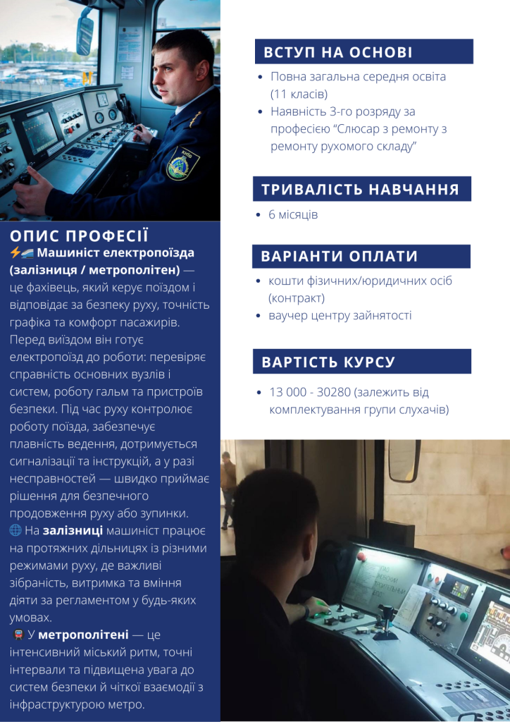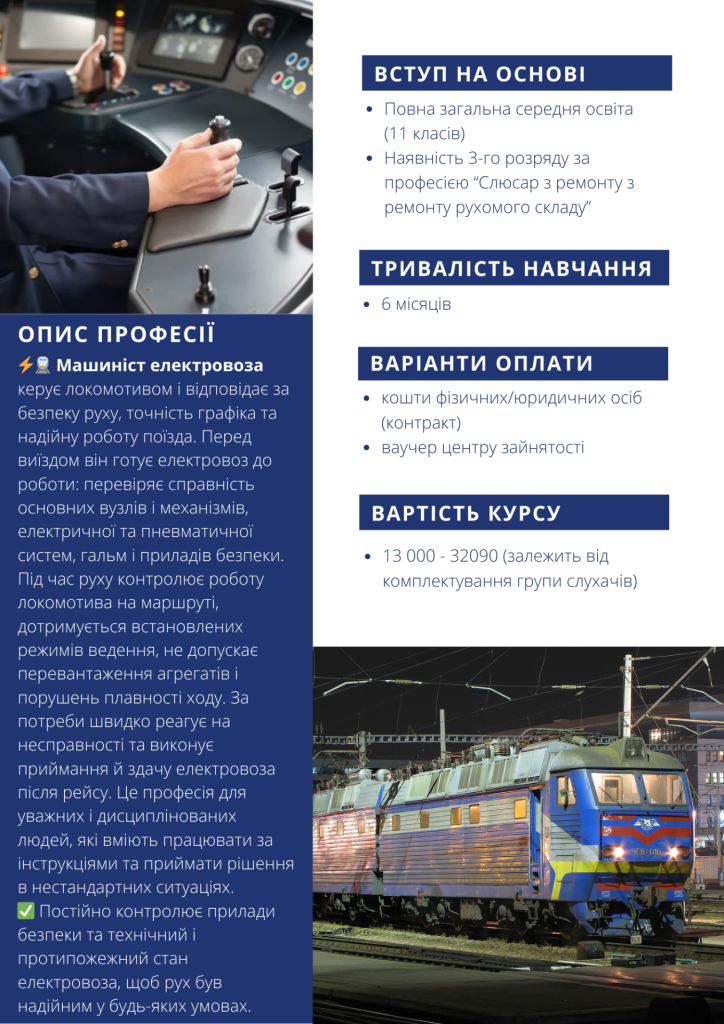 Машиніст електропоїзда (кваліфікація: помічник машиніста електропоїзда)