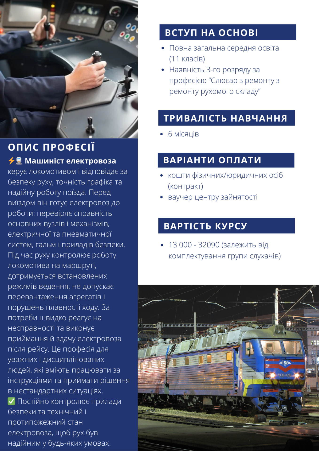 Машиніст електровоза (кваліфікація: помічник машиніста електровоза)