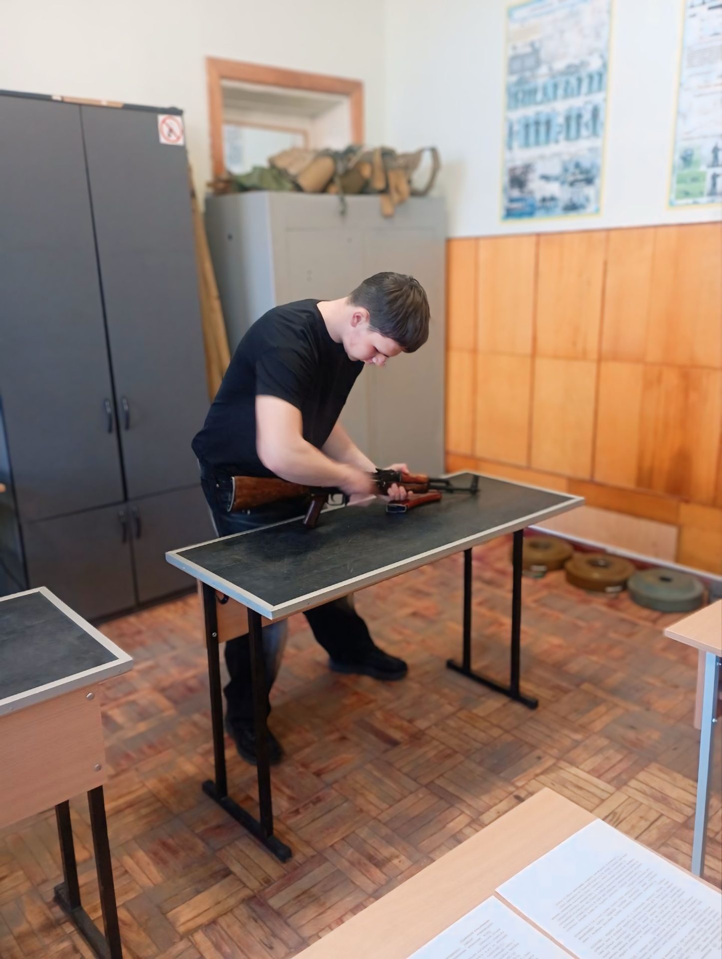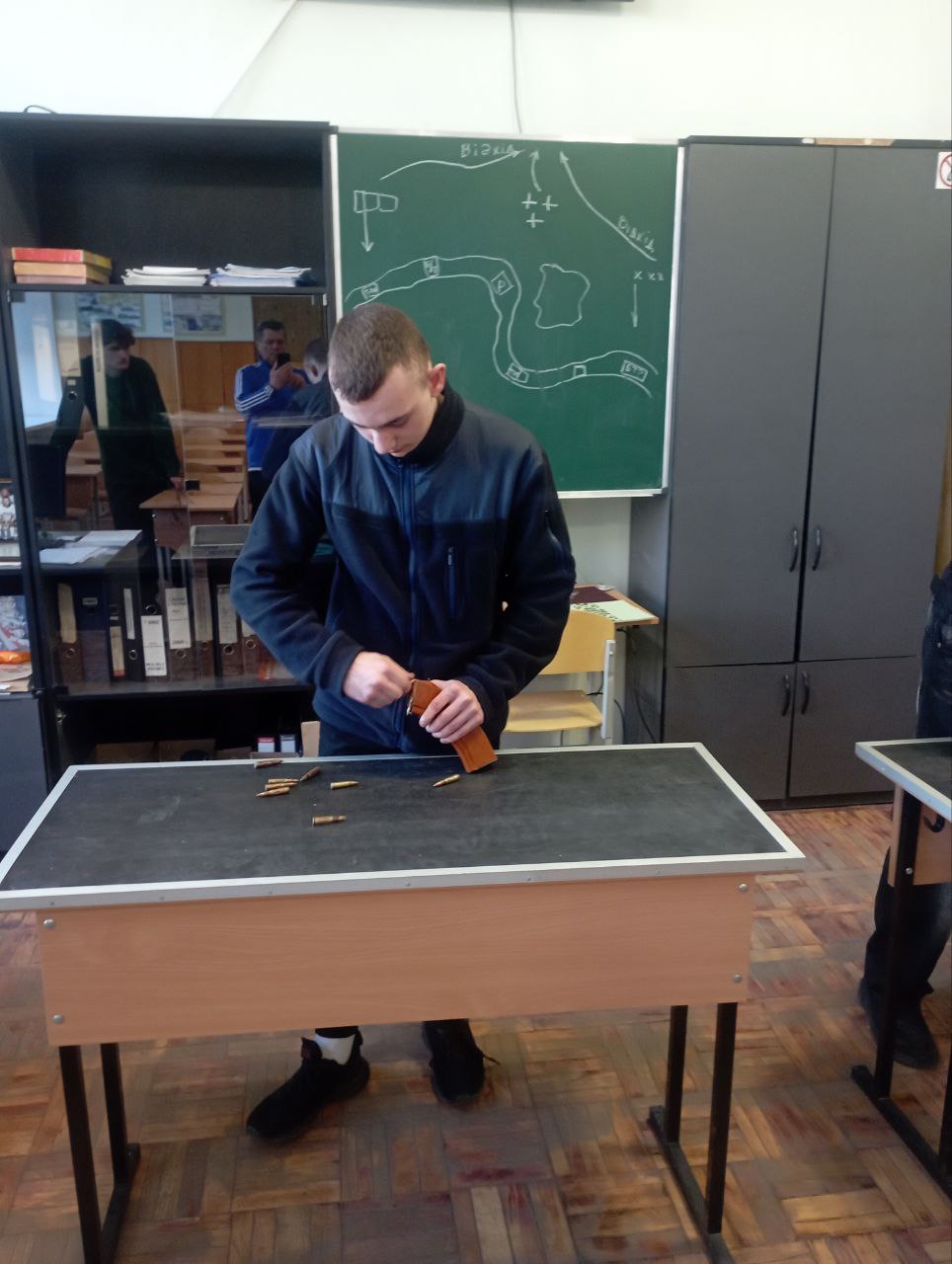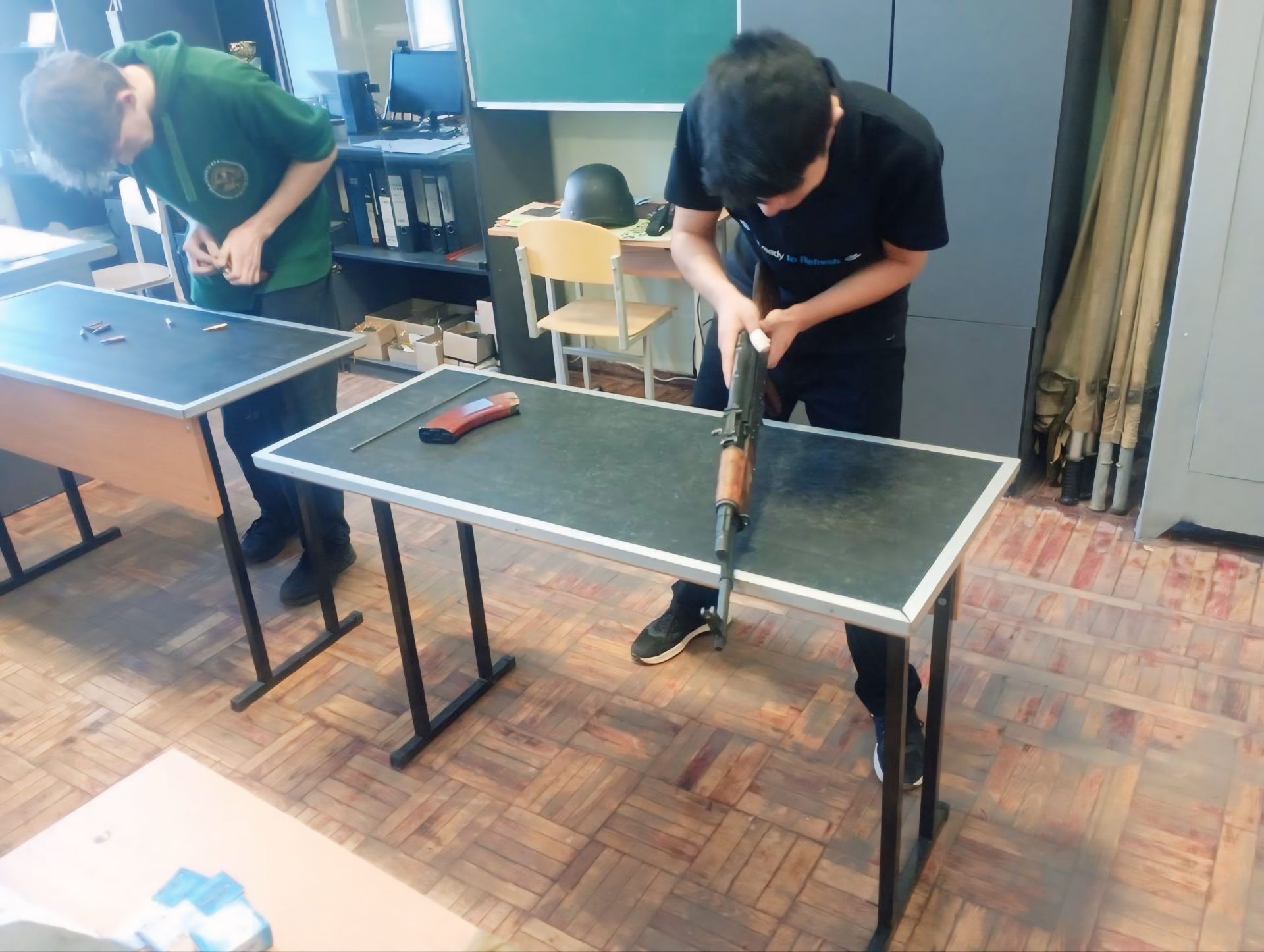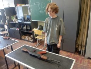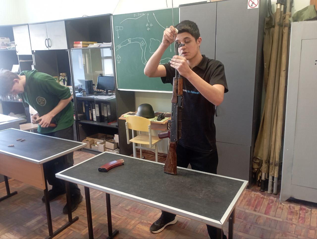 Юнаки першого курсу демонстрували свої навички у техніці розбирання та збирання автомата Калашникова АК-74, а також у вправі з укомплектування магазину. Учасники показали хорошу підготовку, швидкість та зосередженість.